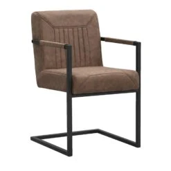 Eetkamerstoel Senja – Lederlook – Donkergrijs – Naturel Hout
