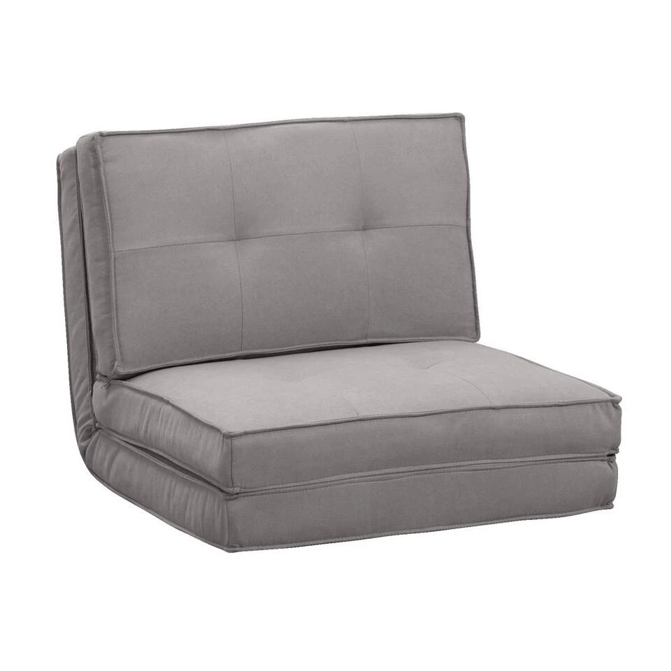 Slaapfauteuil Sion is een praktische en comfortabele 1-persoons slaapbank in de kleur grijs. Deze compacte bank/stoel past in elke kleine woonruimte en zorgt voor een comfortabele zit of slaapplek. Hij is ontworpen voor kleinere huizen waar ook wel eens iemand blijft logeren. Dankzij de mooie stoffering met decoratieve knopen past de bank in elke moderne setting. De afmetingen van de slaapbank is: 70 x 212 cm.